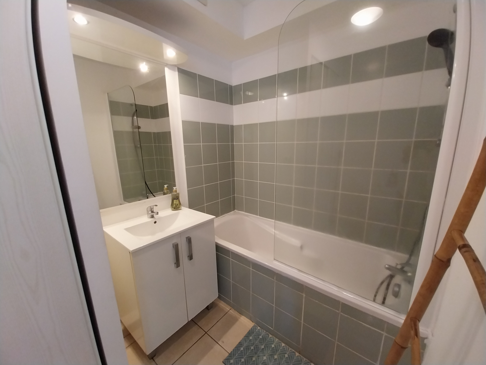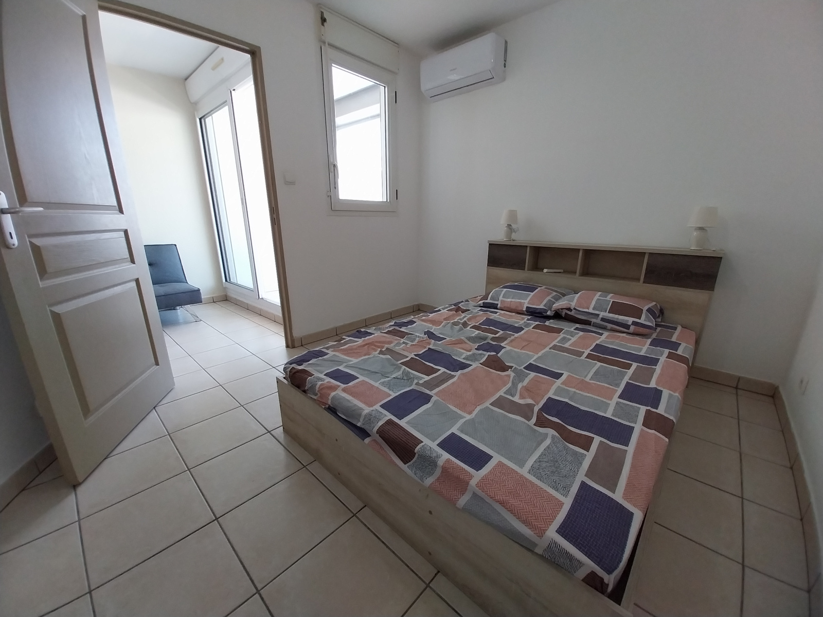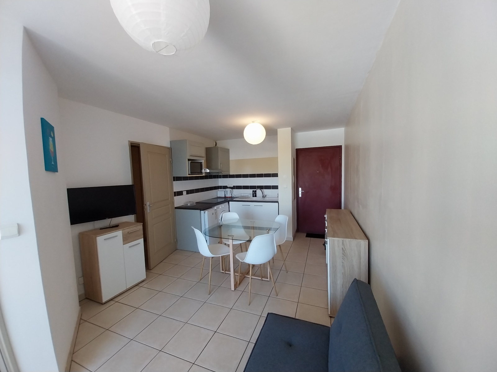 Corev Immobilier, vous propose à la location un T2 meublé dans une résidence sécurisée. Ce logement entierement équipée est constitué d'une entrée, d'un salon avec coin cuisine équipée, d'une chambre climatisée, d'une salle de bain, d'un wc et d'une terrasse de 6m². Un parking en sous-sol attribué avec le logement.