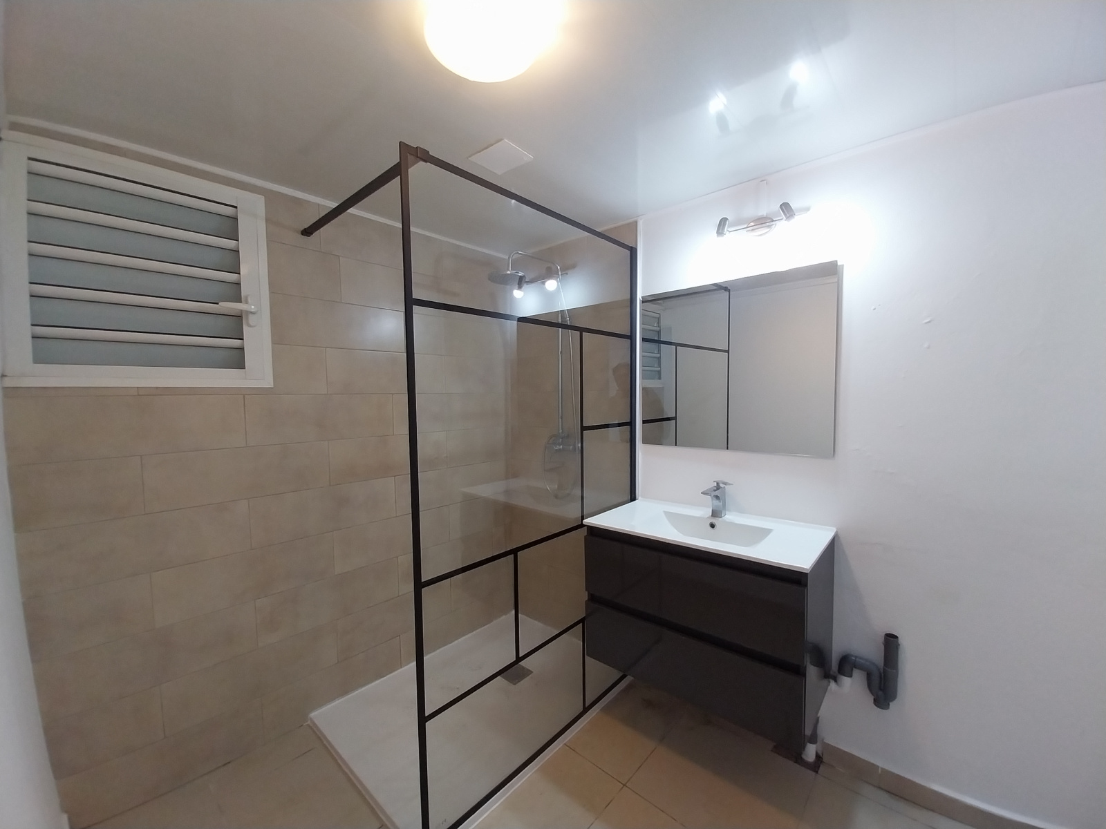 Corev immobilier, vous propose à la location dans un envirronement calme de BOUCAN, une maison T4 avec un studio. Ce logement est constitué pour la maison principale d'une belle pièce de vie avec coin cuisine semi-équipée, de trois chambres, d'une salle de bains avec wc, d'une salle d'eau, d'un wc séparé, d'une grande varangue vue mer et d'un grand garage. Au bas de la maison, vous y trouverez un studio indépendant constitué d'ue pièce principale avec coin cuisine semi-équipée, d'une salle d'eau avec wc et d'une varangue.