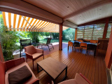 Corev immobilier, vous propose à la location, une villa meublée T5 proche du lagon dans une résidence avec piscine. Cette maison mitoyenne d'un coté est constituée d'une entrée, d'un salon, d'une cuisine ouverte, d'une salle d'eau, d'un wc séparé, de deux chambres au rdc, de deux chambres à l'étage dont une avec salle de bains et wc et d'un bureau. Vous y trouverez une belle varangue sécurisée avec une terrasse en prolongement. Secteur très recherché.